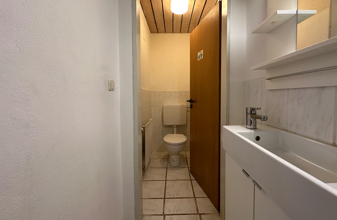 Weiterhin gibt es einen Wartebereich mit einer Lichtkuppel und einen absperrbaren großen Raum, der ebenfalls mit einer Lichtkuppel versehen wurde. Eine Toilette mit Waschbecken ist ein weiterer Bestandteil der Einheit.